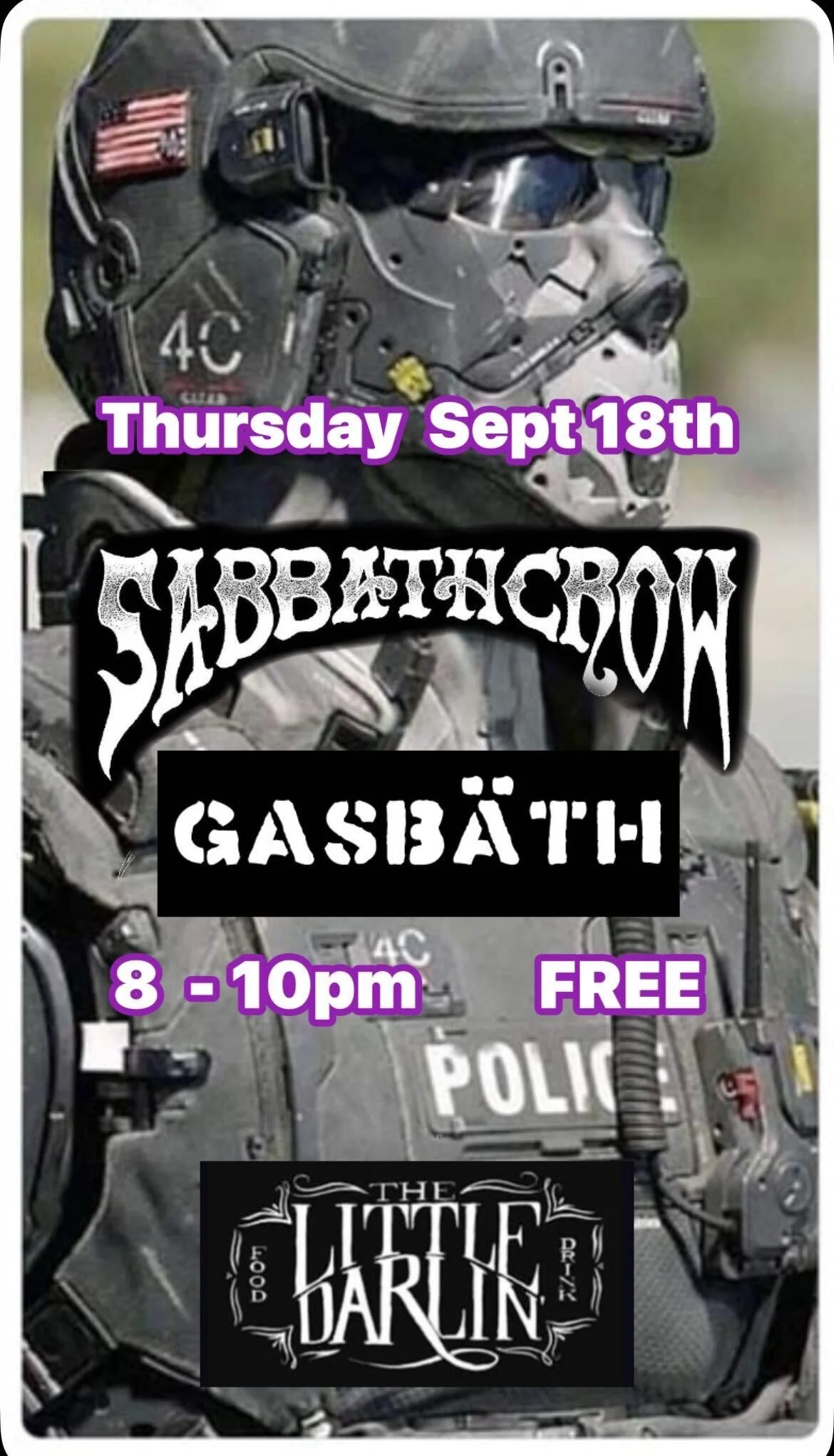 Sep 18 SABBATH CROW / GASBÄTH Thursday, September 18, 2025 8:00 PM 10:00 PM The Little Darlin' (map) Google Calendar ICS View Event →