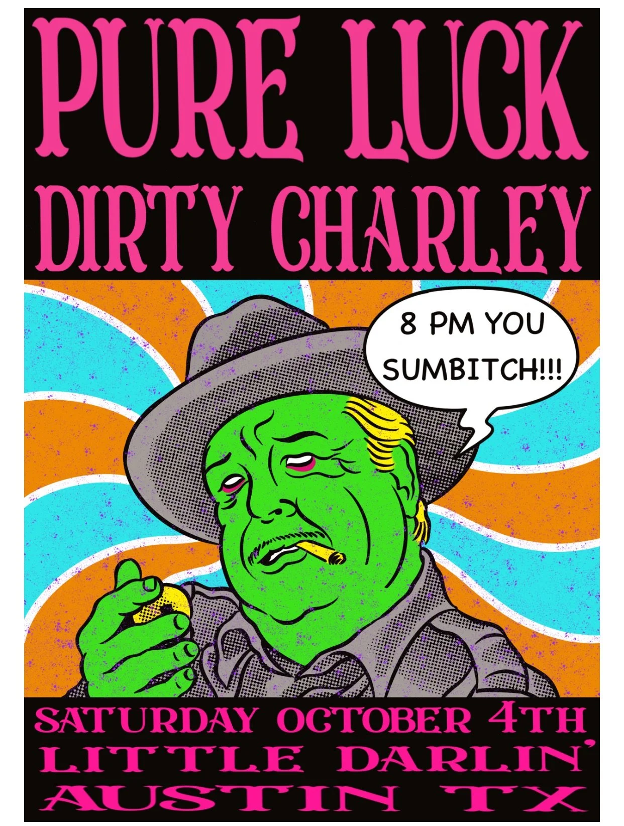 Oct 4 PURE LUCK / DIRTY CHARLIE Saturday, October 4, 2025 8:00 PM 10:00 PM The Little Darlin' (map) Google Calendar ICS View Event →
